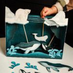 W materiałach znajduje się pudełko – teatrzyk do samodzielnego złożenia i ilustracje morskich ssaków z arktycznych wód.