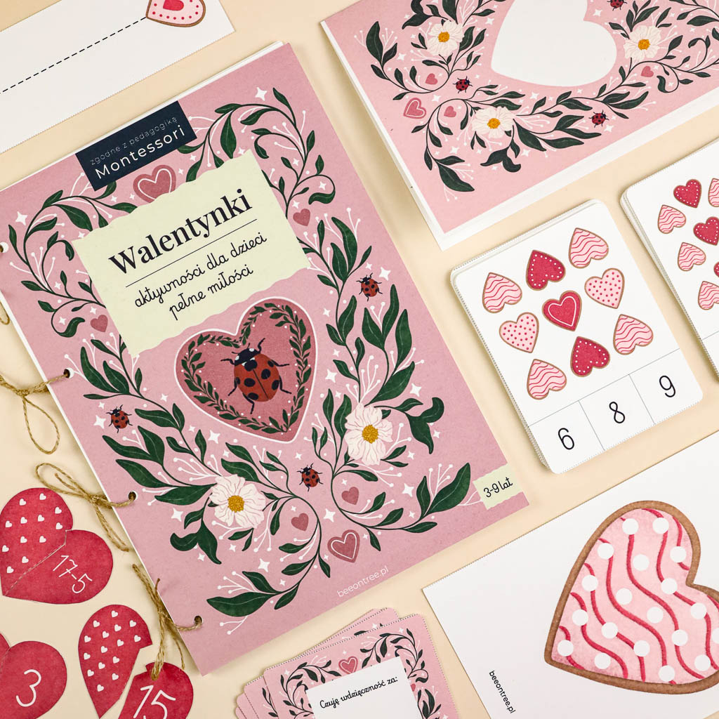 Zestaw składa się z modułowych kart i elementów do wycinania, które można dowolnie łączyć – w formie książeczki przewiązanej sznurkiem lub jako pojedyncze kartki / laurki.
