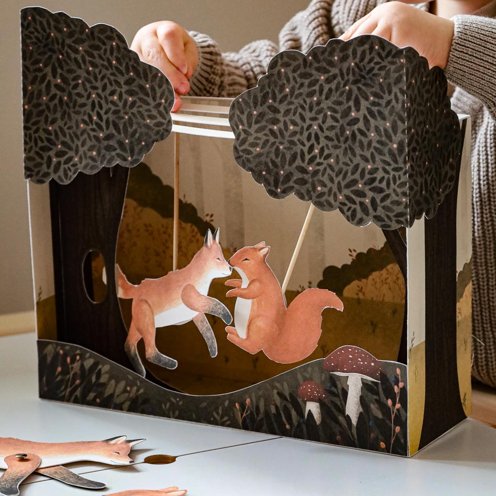 🍁 Jesień - Pudełkowy Jesienny Las - makieta 3D do samodzielnego złożenia i zabawy z lisem i wiewiórką