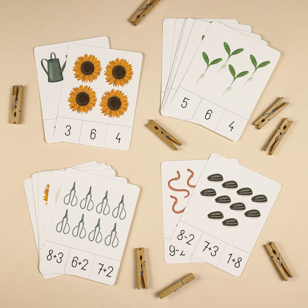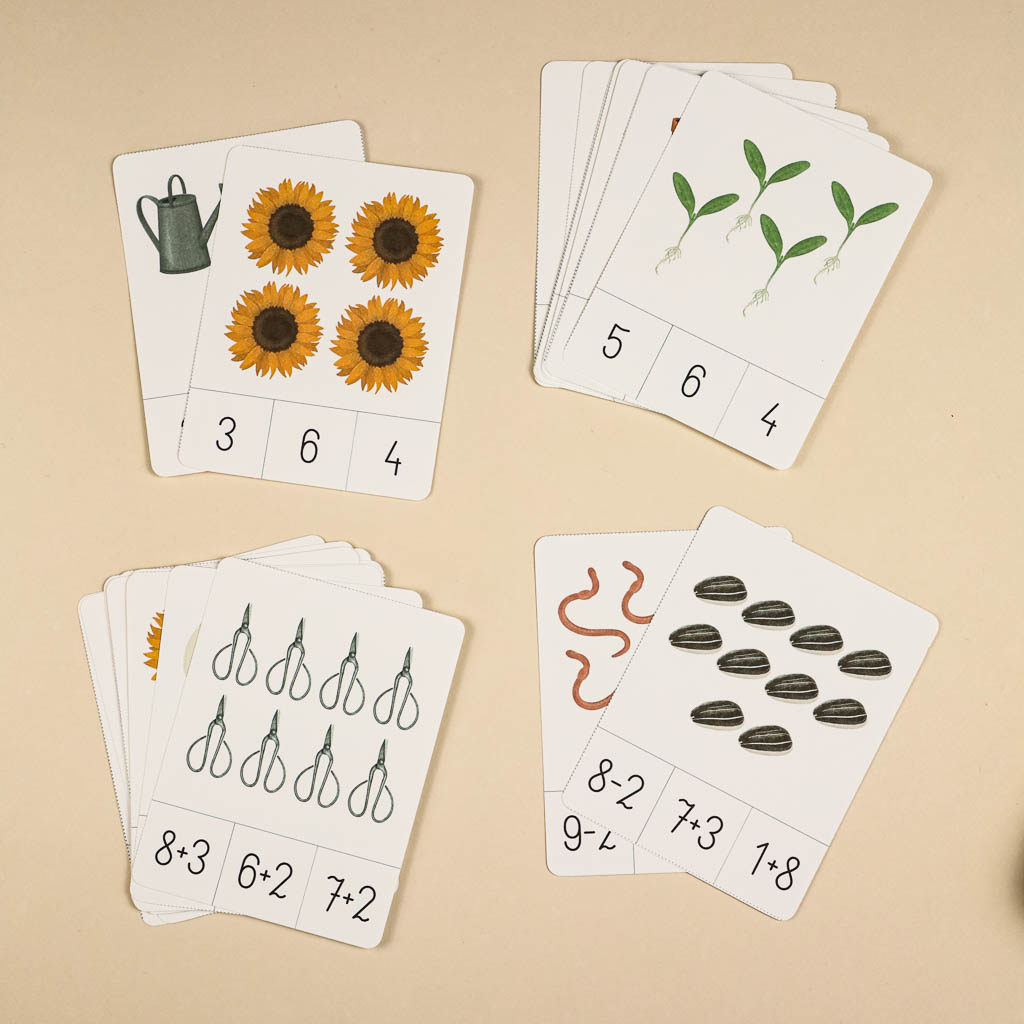 W zestawach znajdziesz m.in. karty pracy z cyklem rozwojowym słonecznika, karty klamerkowe z liczeniem i prostymi działaniami, puzzle paskowe, wycinanki, wyklejanki oraz zeszyt ćwiczeń, które można wykorzystać w domu, przedszkolu czy podczas zajęć w ogrodzie. Wszystkie materiały zostały stworzone zgodnie z filozofią Montessori – dziecko ma możliwość obserwacji, analizy, działania i samodzielnego dochodzenia do wniosków.